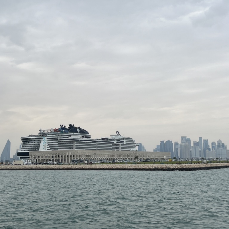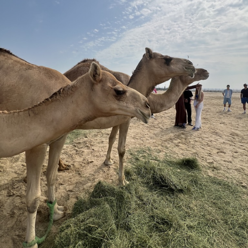 Am nächsten Morgen legten wir in Doha an. Die Skyline der Stadt war atemberaubend, und ein Besuch des Souq Waqif bot einen authentischen Einblick in die katarische Kultur. Dort befand sich auch der Markt, wo die Falken zum Verkauf angeboten und präsentiert werden. Nach dem Marktbesuch machten wir eine Panoramafahrt mit dem Bus durch die Stadt, wo wir zum Beispiel die royale Kamelparade beobachten konnten.