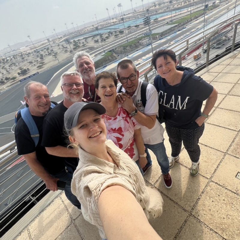 Im Anschluss darauf folgte mein persönliches Highlight – ein Besuch auf der Formel 1 Rennstrecke von Bahrain. Dort konnten wir die oberste Etage des Turms besuchen und hatten einen unglaublichen Blick auf die Strecke, außerdem durften wir das Media Center und die Race-Control Zentrale besichtigen. Für Formel 1 Fans ist dieser Ausflug perfekt!